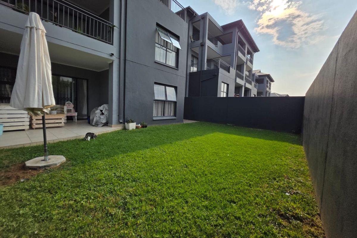 Resort-style living in a secure complex with 24-hour security, pool, gym and cinema; ground-floor apartment with a private garden, three bedrooms, two bathrooms and double covered parking.