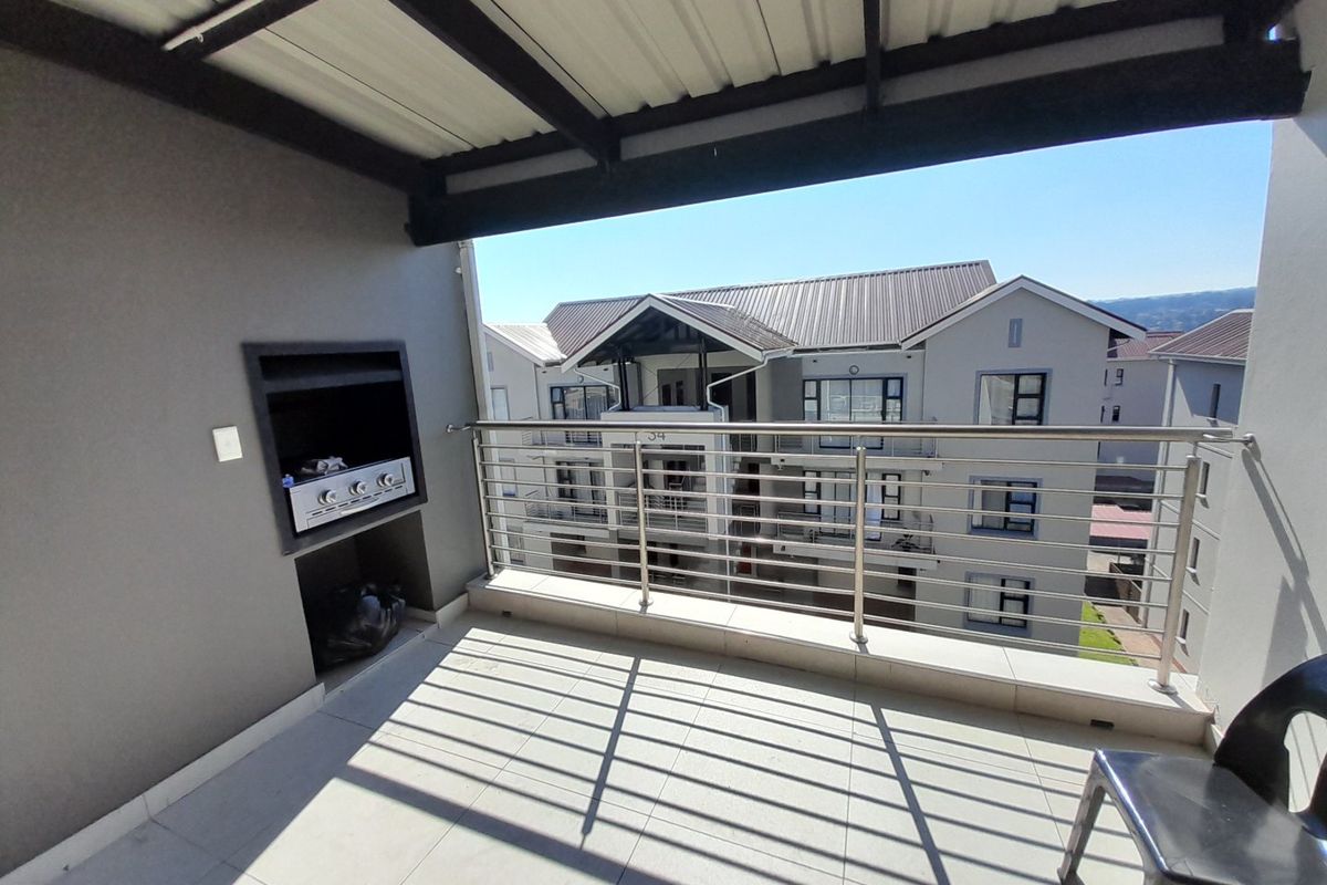 Relaxed modern living with sunset views in Red Ivory Lane, Modderfontein — top-floor apartment with gas-braai patio, granite kitchen, pool, clubhouse and one bedroom, one bath.