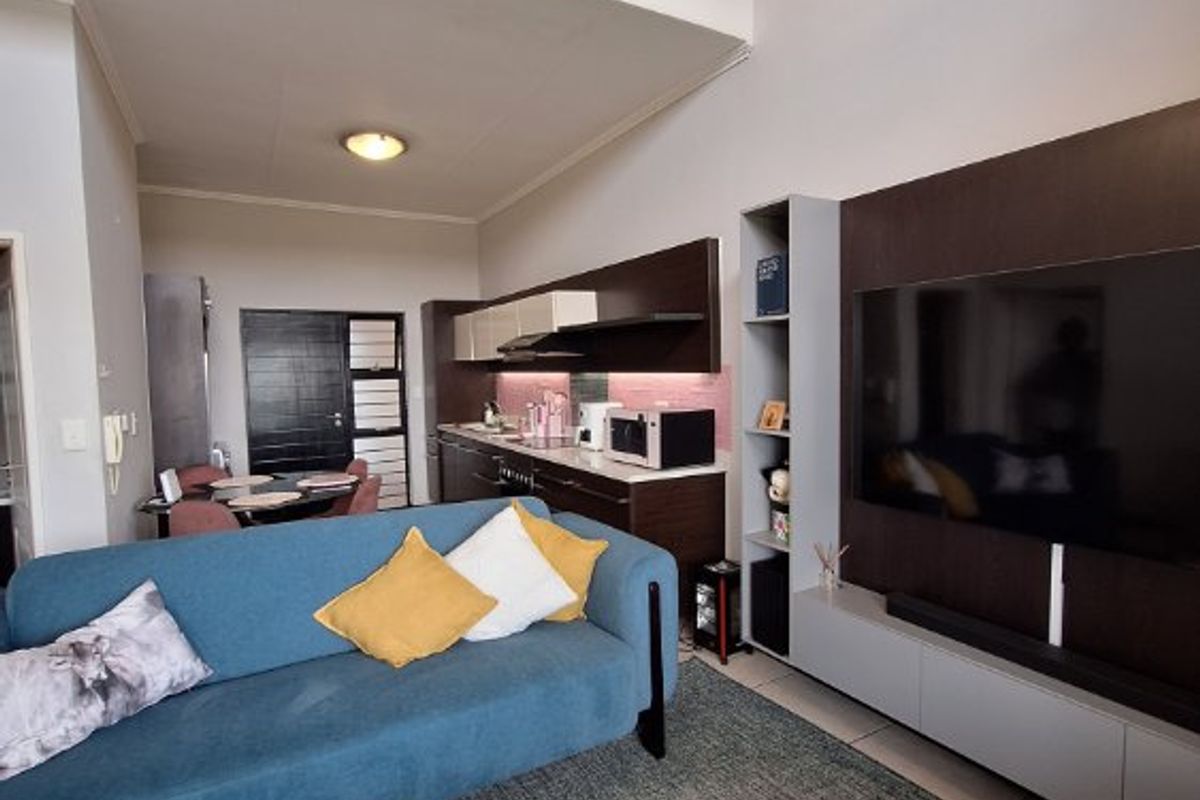 This neat and modern 1-bedroom flat offers comfortable living in a secure and well-maintained complex. With a spacious 52 m2 layout, the unit features a well-designed kitchen with space for three appliances, making it both practical and stylish. The bedroom includes built-in cupboards and a wall unit for added convenience, while the bathroom is neatly finished.