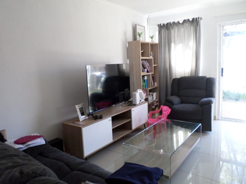 Easy, secure suburban living in Eden Glen, convenient to freeways, shops and schools. Sunny upstairs corner unit with covered patio and braai, established gardens; two bedrooms, lock-up garage.