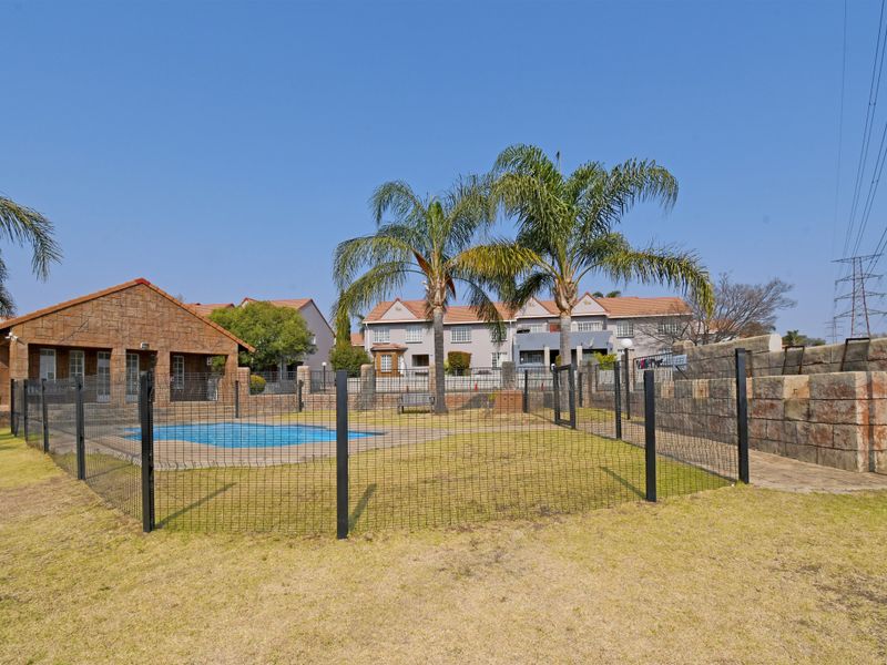 Low-maintenance, lock-up-and-go living in a secure estate with communal pool and braai, modern granite kitchen with breakfast nook; one-bedroom en-suite and covered carport.
