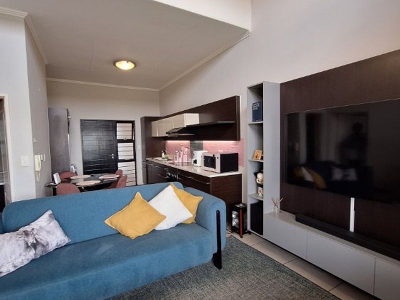 Enjoy effortless living in a prime location with 24/7 security, pool and braai area, open-plan gas kitchen with appliances, covered carport — 1 bed, 1 bath.