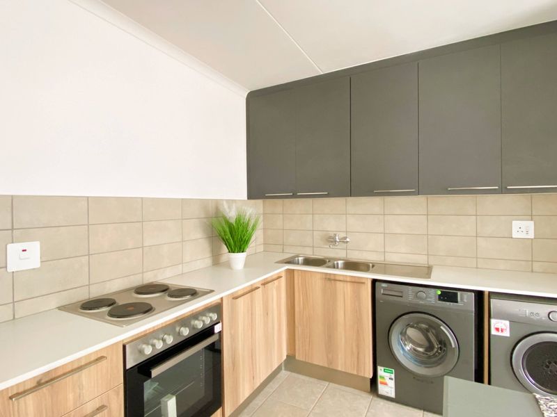 Convenient urban living near O.R. Tambo—10-minute drive, with schools and taxis close by; spacious lounge, recently retiled kitchen, two bedrooms, two bathrooms and one parking.