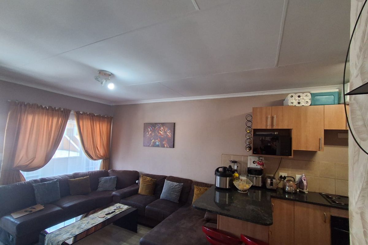 Relaxed suburban living in Elspark, minutes from schools and shopping, in a secure complex — open-plan lounge with granite kitchen and balcony, two bedrooms, one bathroom, covered parking.