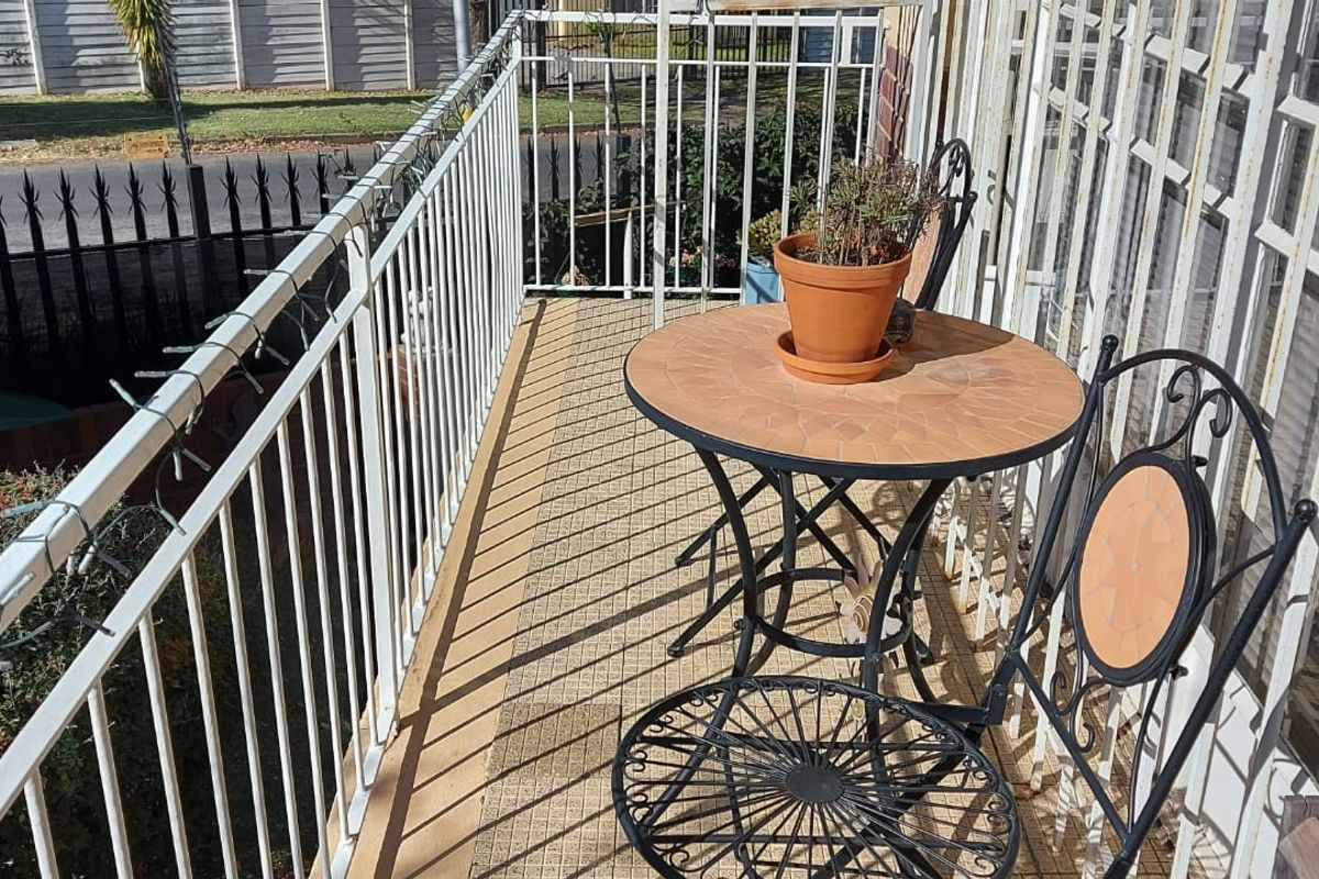 Both bedrooms have their own balconies and built-in cupboards, creating a private and airy retreat. The home includes one full bathroom and a guest toilet for convenience. Outside, there is a private garden, additional parking, and a carport, with the property being pet-friendly for animal lovers.