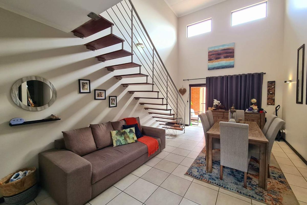 Entertain effortlessly in The Meridian loft with double-height lounge and two private balconies — one with built-in braai. Pet-friendly, modern kitchen; three bedrooms, two baths, two parking.