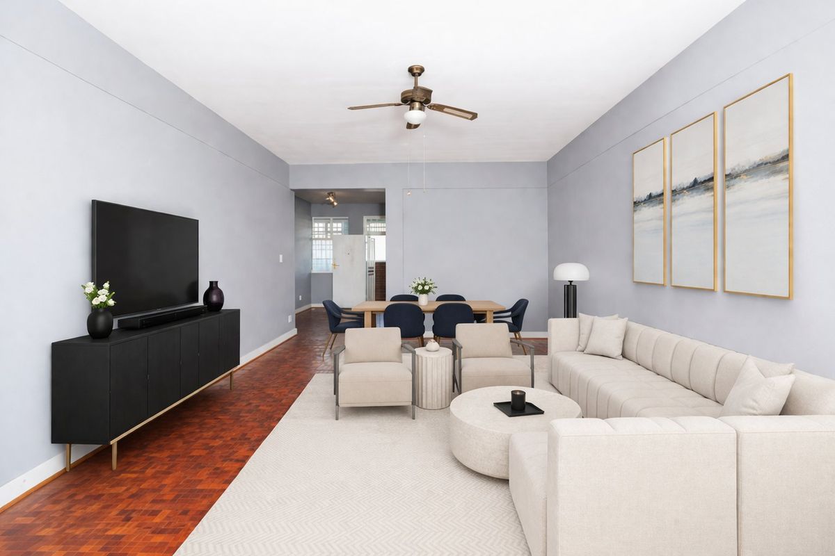EXCLUSIVE MANDATE: This spacious and modernized 98 m2 apartment in the sought-after Dumbarton Oaks complex in Killarney offers a perfect combination of classic charm and modern comfort. The apartment features beautiful parquet wooden block floors throughout the living areas, adding warmth and character to the home. A generous lounge and dining area creates a welcoming space for relaxing or entertaining.
