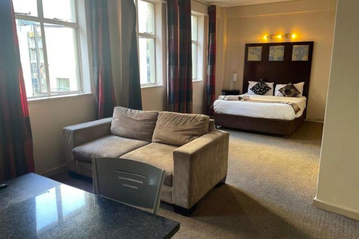 Effortless city living in Marshalltown’s Mapungubwe Apartments, next to corporate offices and M1 access; fully furnished corner studio on the 2nd floor with one bathroom and covered parking.