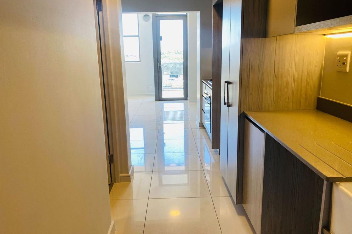Urban convenience in Rosebank opposite The Zone — 5-minute walk to Gautrain, cafes and shops. Off-grid living with full backup power and hot-water; one-bed, one-bath, covered parking.