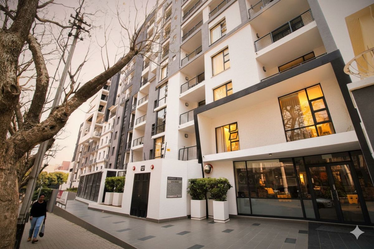 Live steps from Rosebank Mall and Gautrain in a turnkey, fully furnished apartment with west-facing sunset views—two bedrooms, two bathrooms and two parking bays.