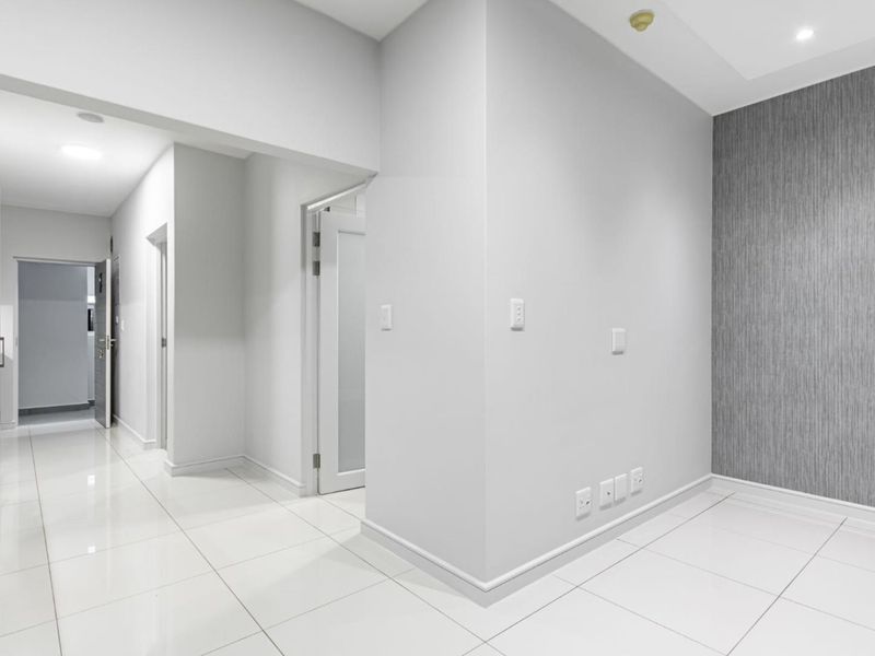 Effortless urban living opposite The Zone Rosebank — five-minute walk to Gautrain, cafes and shops. Off-grid backup power, modern kitchen with SMEG appliances, two beds, two parking.
