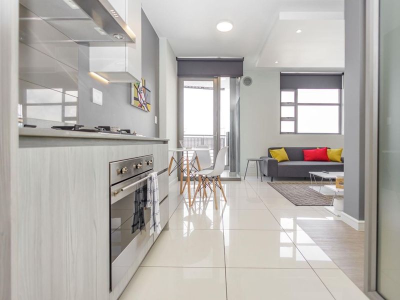 Enjoy vibrant Rosebank living opposite The Zone and Gautrain — cafés, shops and parks on your doorstep. Off-grid apartment with full backup generator, SMEG kitchen, 1 bed, 1 bath, parking.