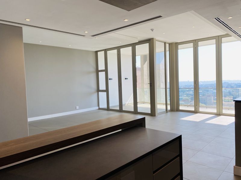Prime Rosebank address opposite The Zone, five-minute walk to Gautrain — uninterrupted power, concierge and SMEG kitchen; pet-friendly. Two-bed, two-and-a-half-bath with two parking.