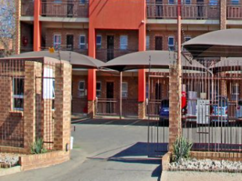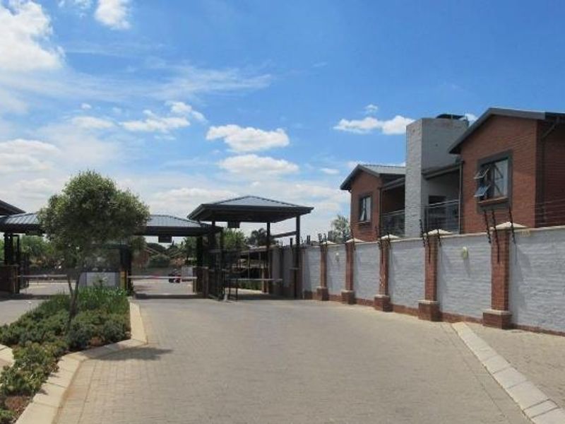 Live connected in a secure gated complex minutes from Sandton, Midrand and the airport — bright first-floor apartment with a sunlit balcony and two bedrooms, one bath, covered parking.