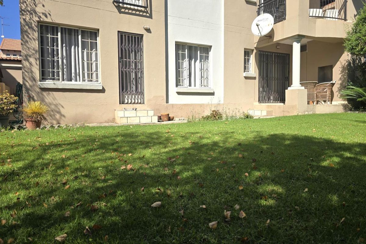 Enjoy secure, park-side living in a 24-hour guarded complex with a sunny patio, private garden and communal pool—open-plan kitchen/living, two bedrooms, bathroom and lock-up garage.
