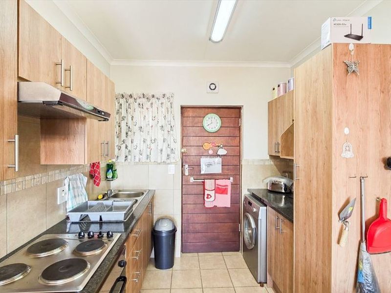 Lock-up-and-go living in a quiet, secure complex with tiled lounge, timber kitchen cupboards, prepaid electricity and allocated garage — two bedrooms and one bathroom.