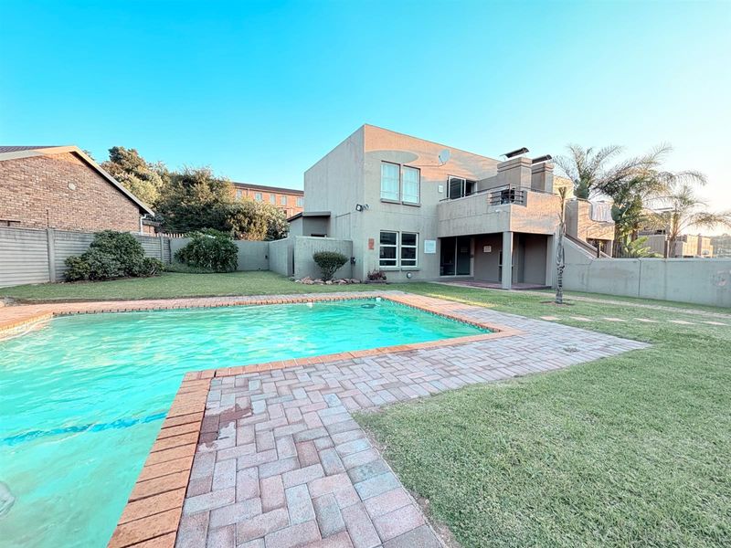 Enjoy relaxed cul-de-sac living with pool and clubhouse; open-plan kitchen flows to a balcony with built-in braai — ground-floor corner apartment ideal for first-time buyers, three beds, two baths.