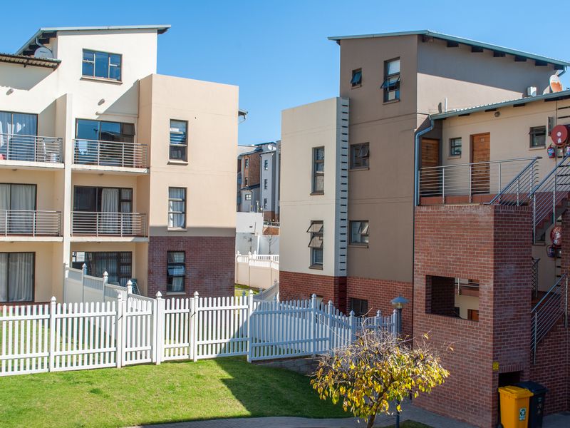 Lock-up-and-go, resort-style living in St Aidan Estate, Barbeque Downs — minutes from Mall of Africa and the N1. Top-floor, light-filled apartment with elevated views; one bed, one bath.