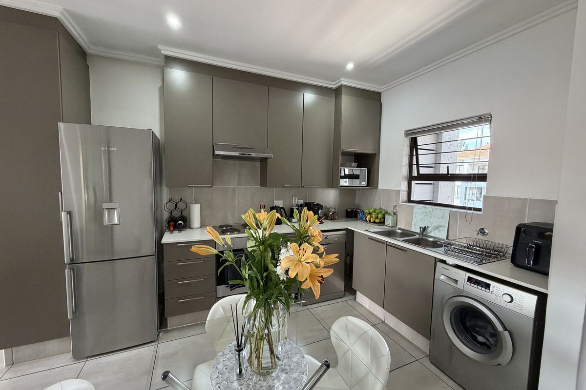 Relaxed suburban living in Barbeque Downs, Midrand — walk to shops and schools, enjoy a communal pool and modern kitchen; two bedrooms, two baths and covered parking.