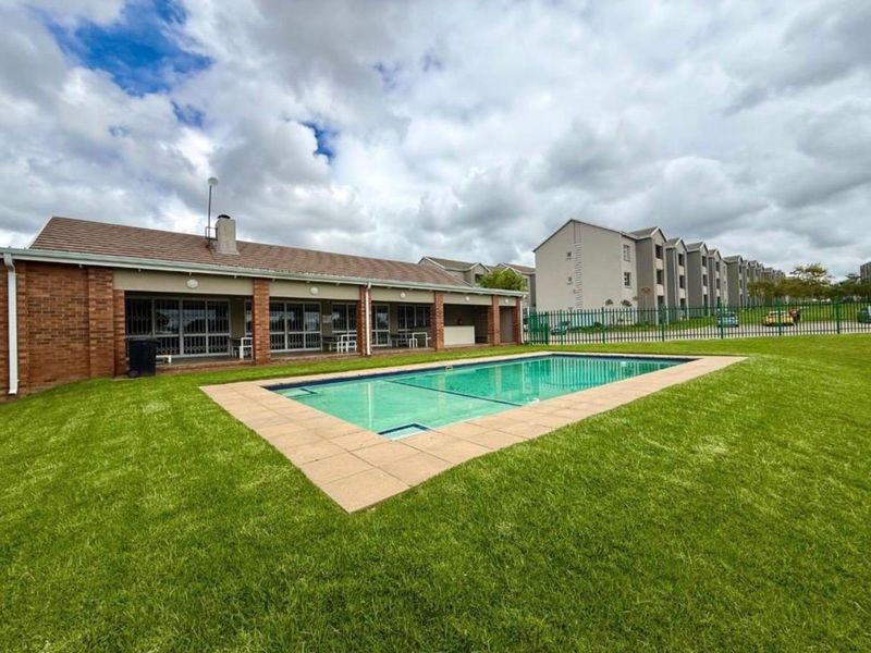 Relaxed suburban living and easy highway access in Blue Hills, Midrand, with a private balcony and resort-style clubhouse featuring a pool and double-sided wood-burning fireplace. Two bedrooms, two baths.