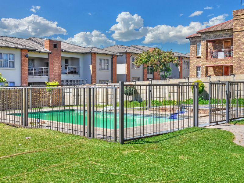 Embrace relaxed Midrand living in Erand Gardens with easy highway and shopping access, ground-floor convenience and a sparkling pool — two bedrooms, one bathroom and two covered parking.
