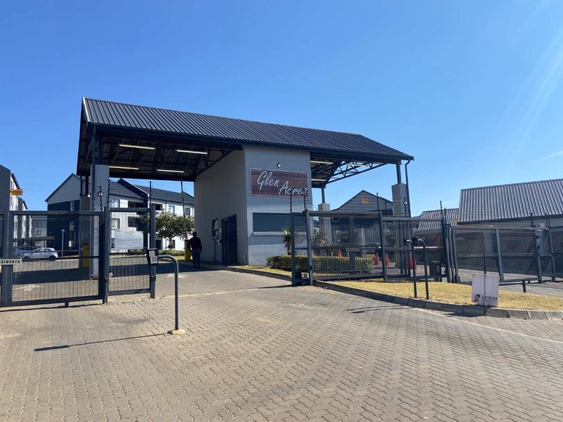 Relaxed, secure suburban living in Glen Acres Estate near Gautrain and malls; clubhouse braai, two-bed, one-bath, single carport, set among mature trees and green lawns.