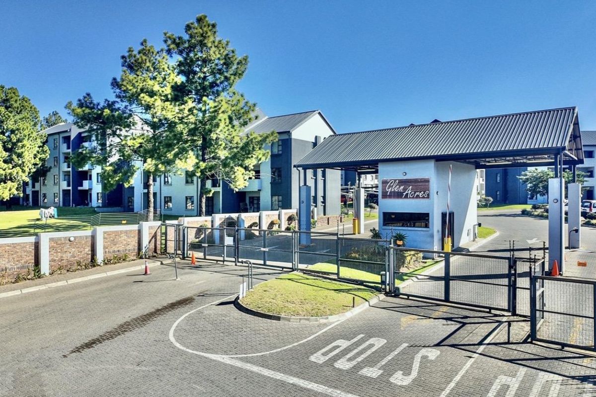 Relaxed estate living with morning balcony views and abundant light in Glen Acres Estate, modern kitchen and open-plan living, one bedroom, en-suite bathroom, covered carport.