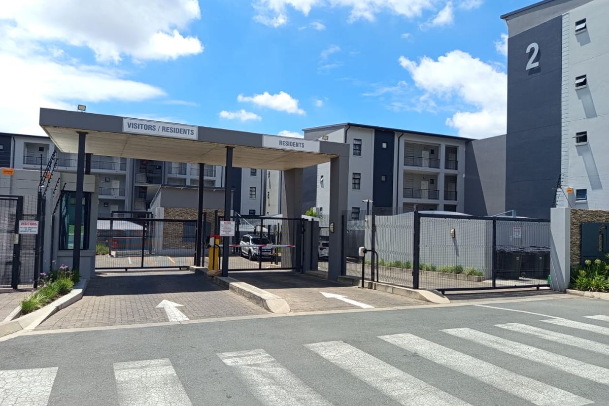 Effortless commuter living opposite Gautrain in Grand Central, Midrand — walk to Boulders Mall and Gallagher. Sunny balcony, two bedrooms, one bathroom and 24-hour security.