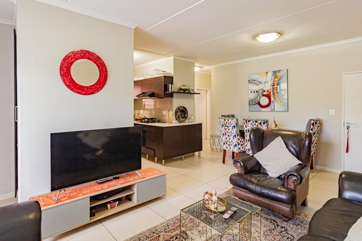 Enjoy secure, family-focused living in Kyalami with quick access to Mall of Africa and top schools; first-floor residence features an open-plan modern kitchen, three bedrooms and two bathrooms.