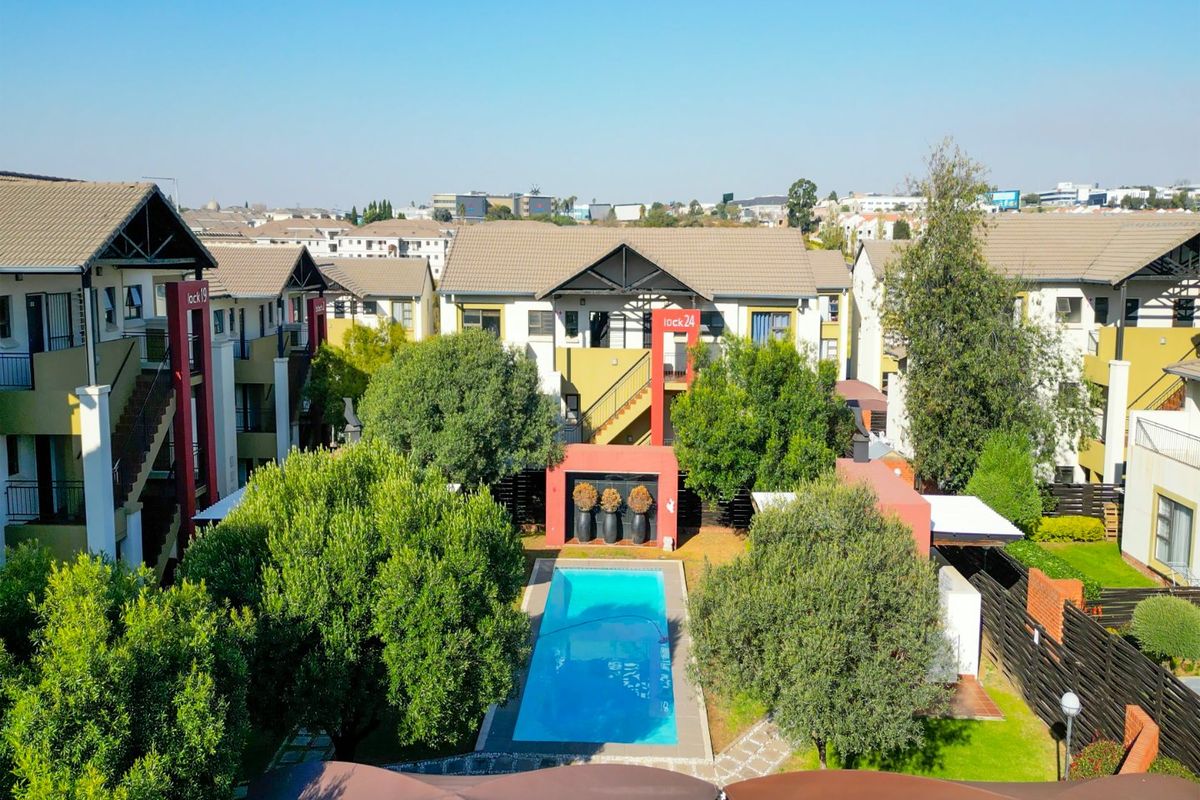 Lock-up-and-go urban living in the heart of Midrand, walking distance to the Gautrain bus; pet-friendly ground-floor apartment with communal pool and two bedrooms, two bathrooms.