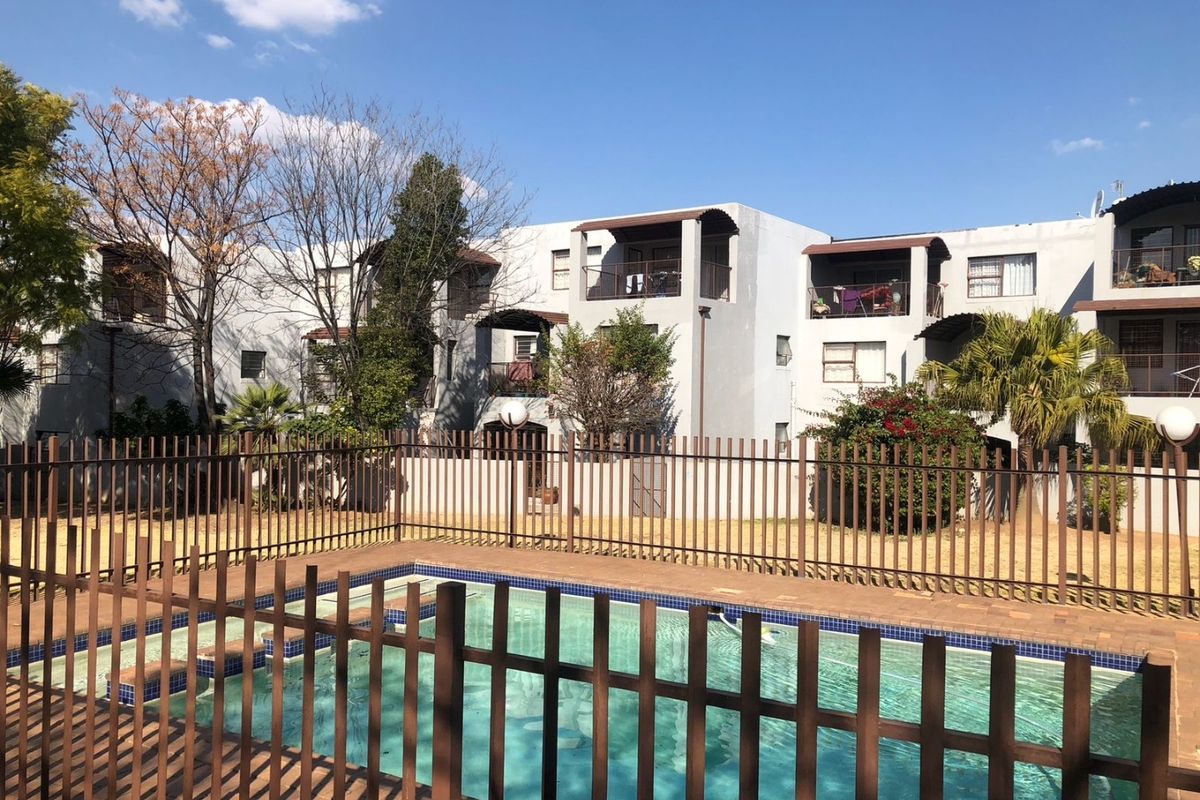 Effortless urban living in Vorna Valley, minutes from Mall of Africa and Waterfall Business Hub, with private balcony and communal pool — two bedrooms, one bathroom, covered parking.