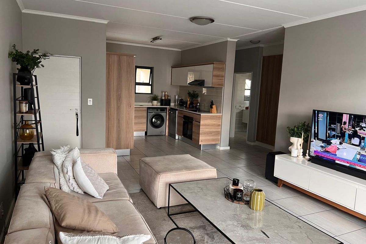 Resort-style living in Kikuyu Estate near Mall of Africa; enjoy a large second-floor balcony and fully fitted kitchen with appliances. Two beds, two baths, two covered parking.