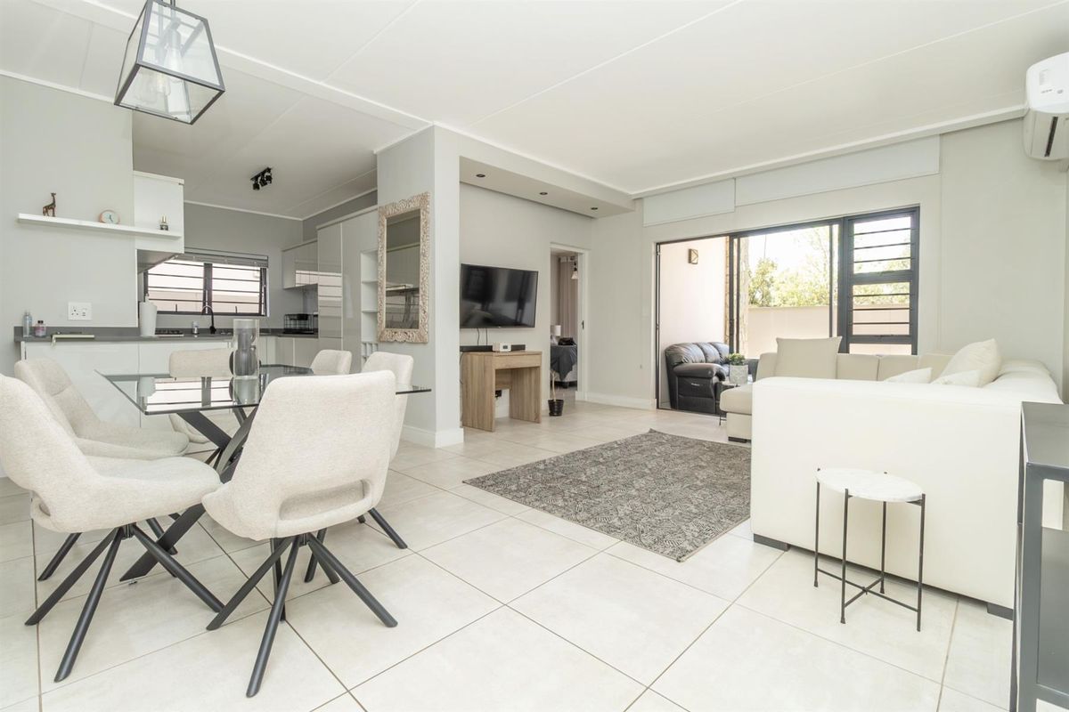 Resort-style living at Polofields Lifestyle Estate, minutes from Mall of Africa and Midrand CBD. Scandinavian finishes and a private landscaped garden — three bedrooms, two bathrooms.
