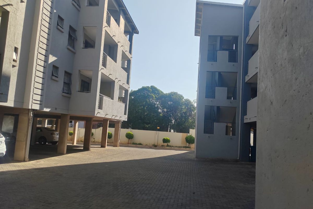 Ideal for students! Conveniently located near the University of Pretoria, Loftus Park, Gautrain station, and Hatfield Plaza. Modern kitchen, Open plan tiled living area that leads onto a balcony. Two tiled bedrooms with built-in cupboards. The two bathrooms - the main being en-suite with a shower, toilet, and basin and the 2nd bathroom with a shower, toilet, basin, and an appliance connection.