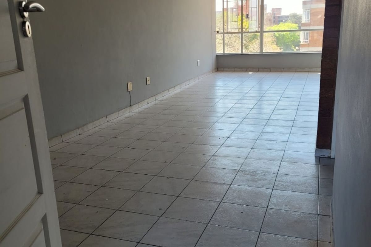 Neat and well-maintained 1.5-bedroom apartment. Offers a comfortable living space in a secure block of flats. The unit features a spacious, open-plan family room designed to accommodate both a lounge and dining area. The separate kitchen is well-equipped with ample built-in cupboards. The large, tiled main bedroom offers a serene retreat, while the additional smaller room is perfect for use as a home office or guest space. The bathroom is fitted with a bath, toilet, and basin.