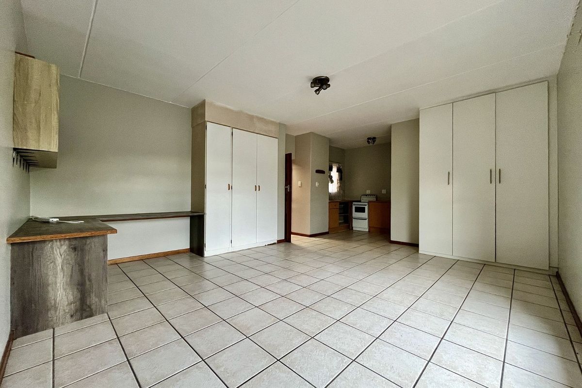 Ideal urban student pad on Lunnon Road — walk to University of Pretoria, Hillcrest Boulevard and Gautrain. Corner bachelor with modern kitchen, built-in wardrobes and covered parking.