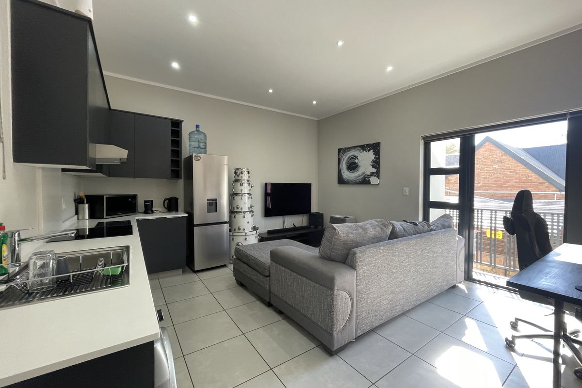 Lock-up-and-go urban apartment in a convenient location near shops and transport, featuring an outdoor braai area, on-site gym, one bedroom, one bathroom, covered secure parking.