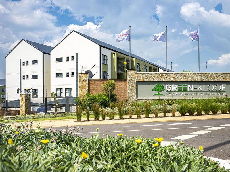 Embrace smart urban living in Greenkloof, Mooikloof Smart City, Pretoria East — near Menlyn and Woodlands Boulevard, with a covered patio and two bedrooms, two bathrooms, two carports.