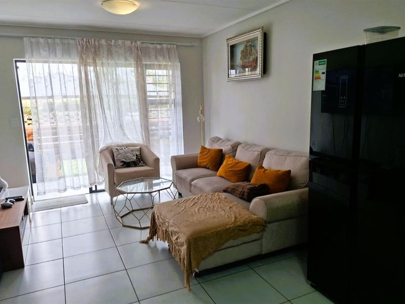 Live active, secure Mooikloof estate life with pool, gym and trails; neat move-in-ready unit boasts a granite kitchen with Defy oven, three bedrooms, two bathrooms.