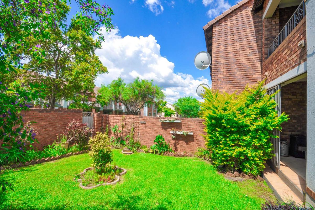 Enjoy secure estate living in Mooikloof Ridge with walking trails, pools and clubhouse; ground-floor apartment opens to a private garden — two bedrooms, one bathroom and single garage.