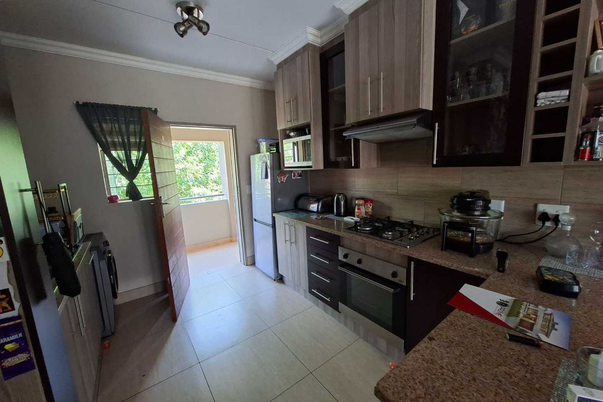 The heart of the apartment is its open-plan kitchen, a space that balances functionality with modern design. Enjoy the convenience of a gas hob, complemented by granite countertops and melamine cupboards. This kitchen is not only a place to cook but also an inviting space to entertain guests. The adjacent open-plan lounge extends onto a balcony equipped with a built-in braai, providing the perfect setting for hosting friends or relaxing in the evening air.