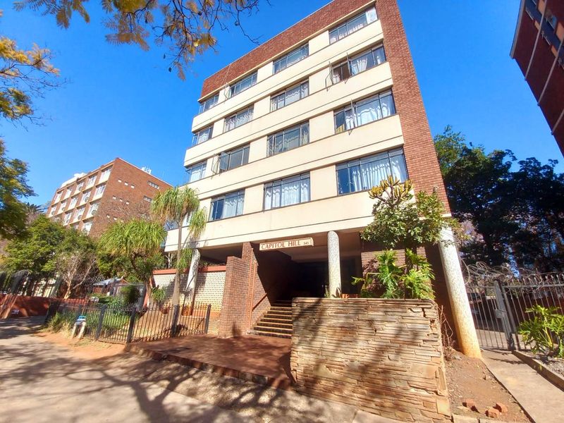 Urban convenience in prime Muckleneuk, steps from universities and transport — corner bachelor with sweeping elevated views, abundant natural light, separate kitchen, large built-in wardrobe and one bathroom.