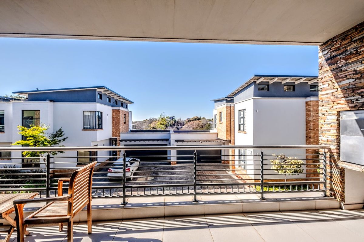 Contemporary urban living near Pretoria Country Club and The Village, featuring a private balcony with built-in braai and a designer kitchen — two bedrooms, two bathrooms, garage