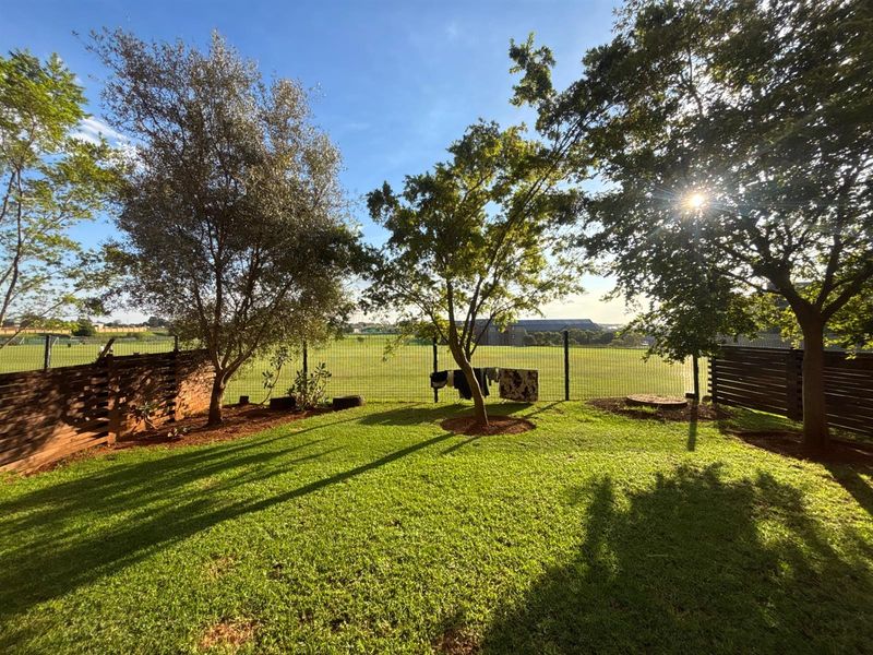 Resort-style living in Hills Game Reserve, Pretoria East — ground-floor apartment with covered patio, built-in braai and generous garden. Three bedrooms, two bathrooms and two covered carports.