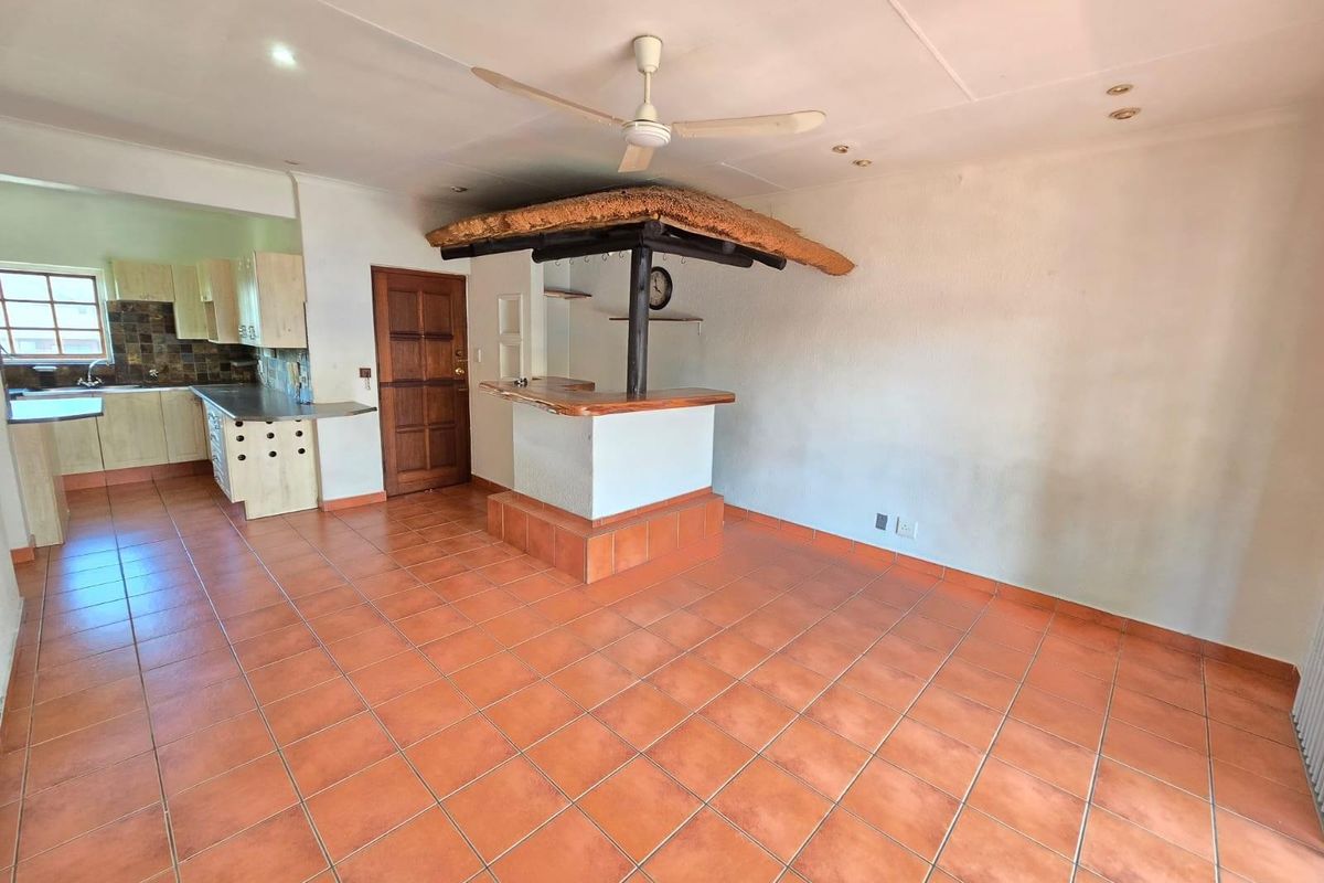 The open-plan layout hosts a kitchen with ample counter space and Built in cupboards, a double sink, space for a washing machine and dishwasher, and a centre island, perfect for a quick morning breakfast.