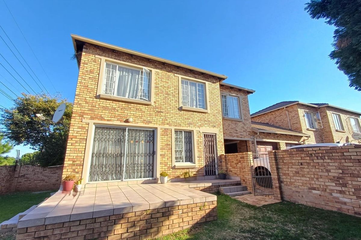 The lounge is bright and inviting, with double windows and a door leading out to the pet-friendly, enclosed garden. Additional security is provided by a Trellidor and a tiled floor, along with a front door secured by a security gate. Large double sliding doors open onto the patio and garden, creating a seamless indoor-outdoor flow ideal for entertaining. The double garage offers direct access to the house, adding to the convenience and security of the home.
