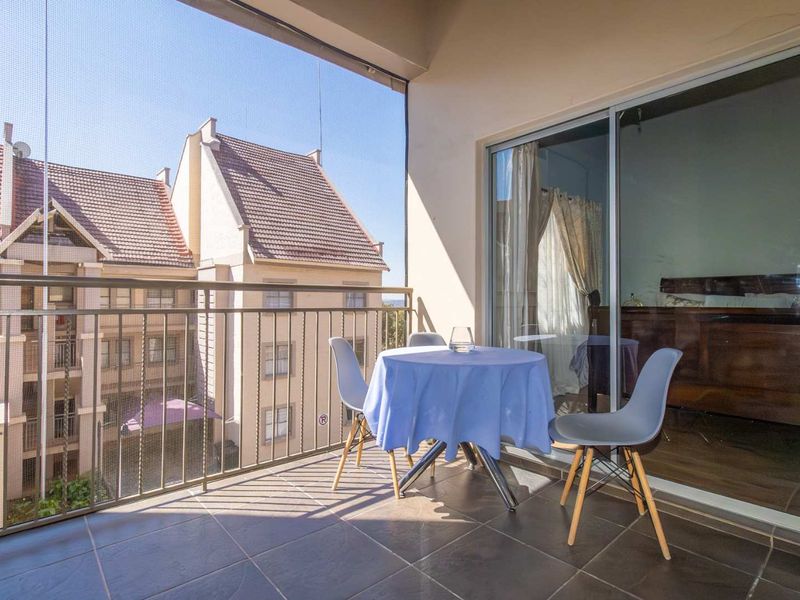 Peaceful Sundowner living in Randburg, close to shops and schools. One-bedroom apartment in The Bridles overlooks a communal garden patio — open-plan living in secure complex, covered parking.