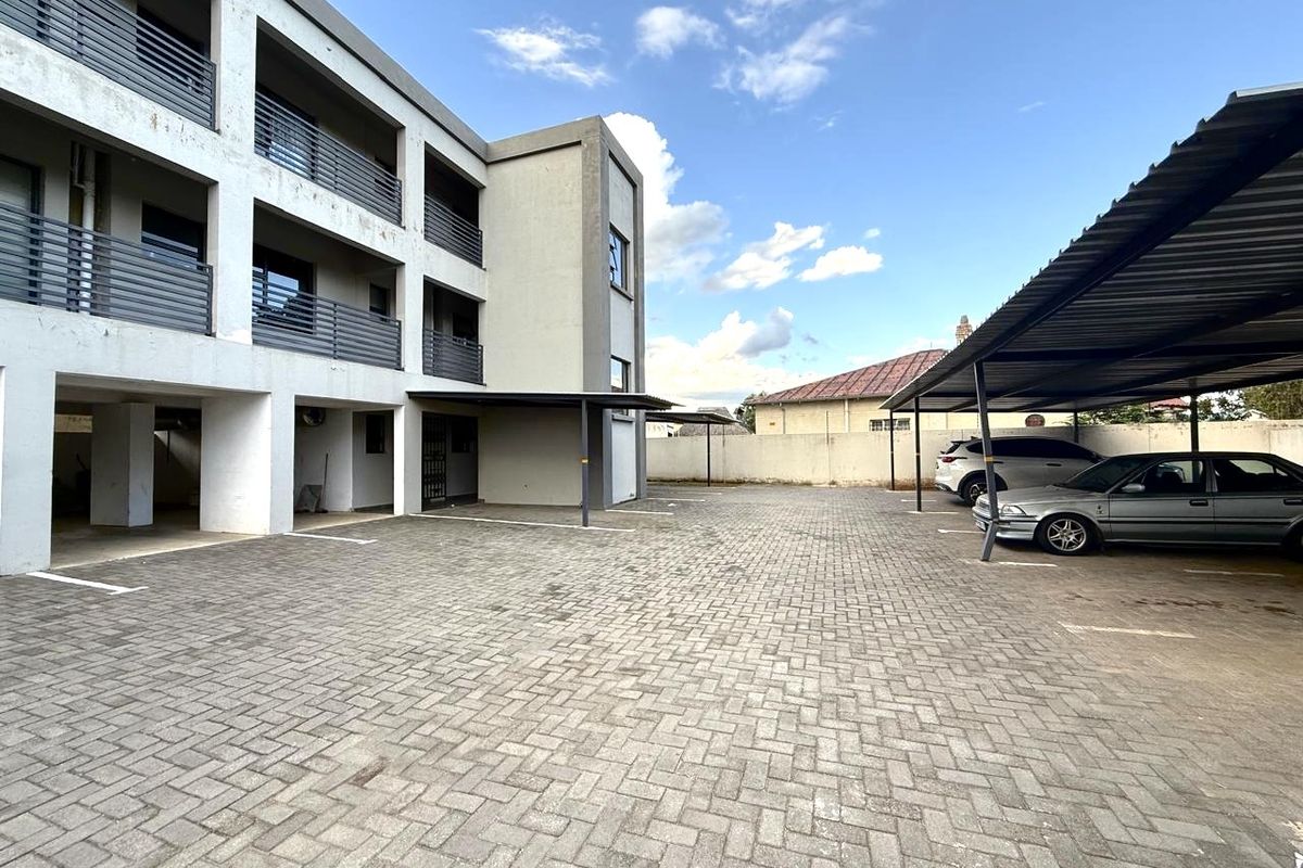 Enjoy easy suburban living in Randfontein, moments from shops and schools; first-floor apartment with modern open-plan kitchen and breakfast nook, private balcony, two beds, one bath, covered parking.