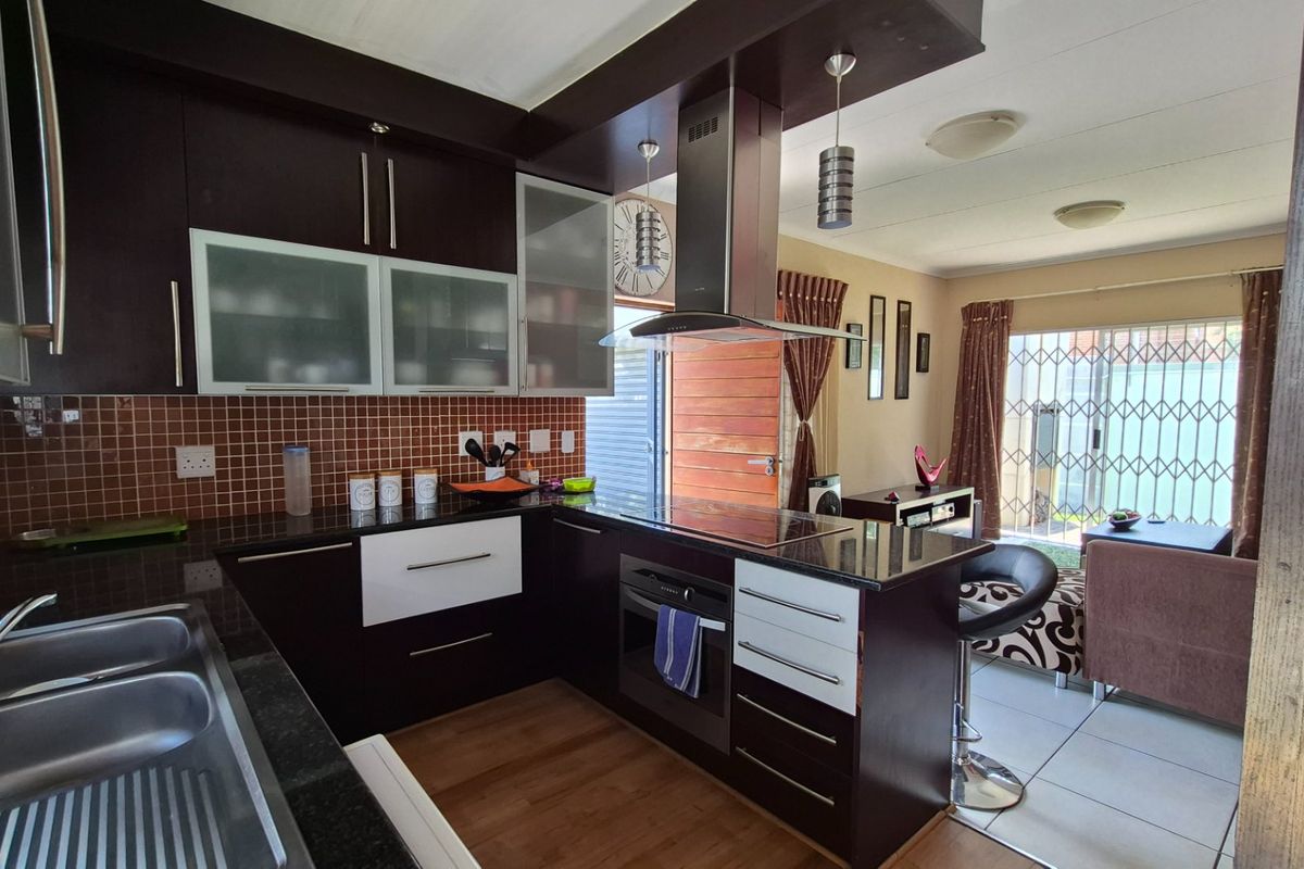 This single-storey townhouse is perfect for first-time buyers, investors, or anyone looking to downsize. Located in a secure complex with 24-hour security, this unit features an open-plan kitchen with ample stunning cupboards and lounge – modern, spacious, and ideal for relaxed living. There are two bedrooms and a full bathroom, offering both comfort and convenience. Step outside to your own private garden with high walls with a built-in braai area – a tranquil space to unwind or entertain guests.