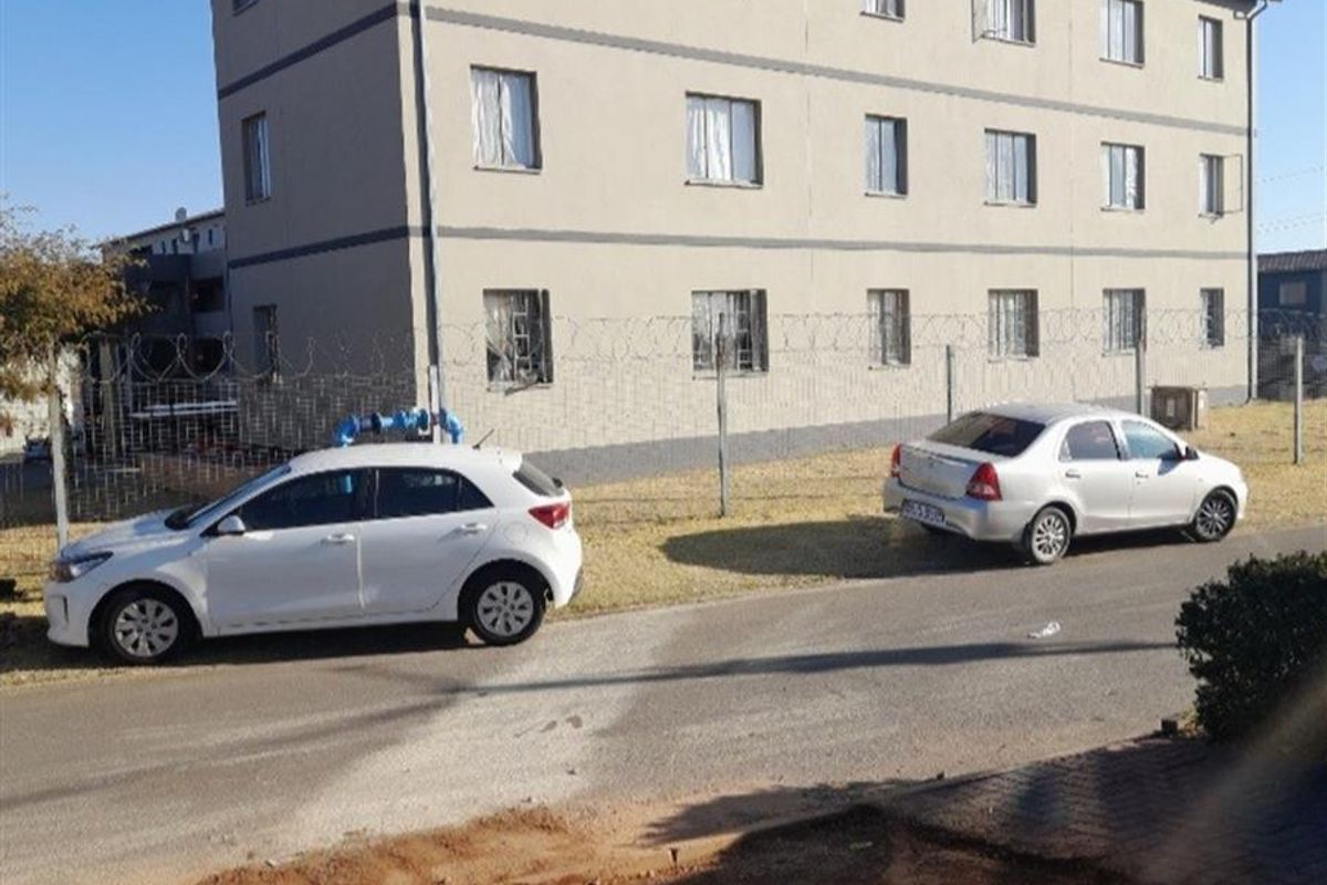 Enjoy easy urban living in Fleurhof, Roodepoort with nearby shops and parks; second-floor apartment offers a fitted kitchen, ample parking and two bedrooms, one bathroom.